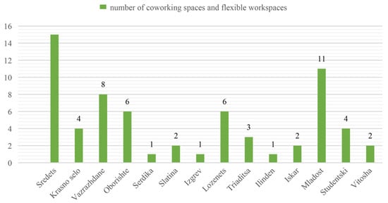 Number of coworking spaces and flexible workspaces by administrative districts of Sofia Municipality.