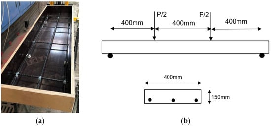 (a) The slab mould showing the reinforcement arrangements; (b) a diagram illustrating the elevation and end-view of the slab specimens.