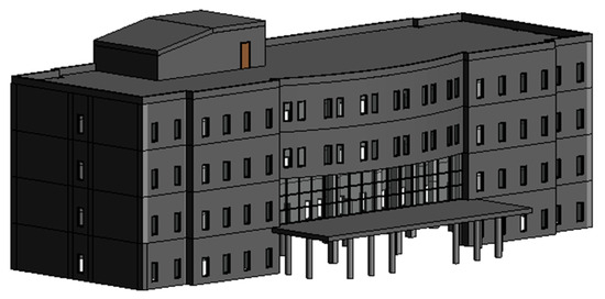 The proposed multi-objective optimization method was utilized to find the optimal design scheme for external wall insulation in an office building located in Zhengzhou City with typical cold climate characteristics in China. Zhengzhou City is located in a cold area of northern China. It is cold and dry in winter and hot and humid in summer, which puts forward higher requirements for the building’s thermal insulation design. Office buildings are one of the major building types that consume energy. Office buildings in Zhengzhou have high energy consumption for winter heating and summer cooling. To study the optimal design of external wall insulation, different types of cold and heat sources can be taken into account while considering different insulation materials so as to explore their impact on economy, energy, and low carbon. Taking the office building in Zhengzhou City as a case study can provide concrete and operable solutions for the multi-objective optimization design of a building’s exterior insulation. Figure 2 shows the design model of the concerned building. The gross floor area of the four-story office building is 3682.25 m2.