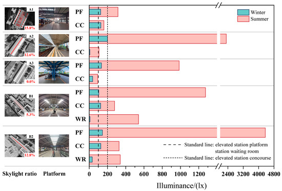 While some of the findings are significant, limitations exist. Yuan et al. examined thermal and lighting optimization for elevated stations in Tianjin [29], indicating that natural lighting requirements could be met with a minimal skylight ratio. However, the use of the Universal Thermal Climate Index (UTCI), a metric suitable for outdoor environments, introduced errors due to the semi-outdoor nature of elevated stations. Pan et al. [30] analyzed two underground stations in Beijing, but they did not account for the thermal environment changes from outdoors to the concourse, which may lead to inaccuracies in the final results. Chen et al. [31] investigated underground stations in the warm region and found that, in addition to the studied summer season, there were numerous passenger complaints about the thermal environment in winter and transitional seasons.
