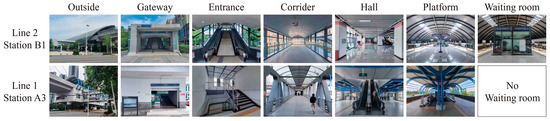 The research commenced with field and online surveys at ESS buildings in the HSCW region of China. Five representative stations in Wuhan were selected based on differences in openness, building scale and form, location, and ridership. These stations can represent the main building space forms of ESS buildings in the HSCW region of China. Of these, stations A1, A2, and A3 are located on Line 1, while stations B1 and B2 are situated on Line 2. Table 2 presents images and specifications of the five stations. The stations exhibit significant differences, resulting in varied internal environments that facilitate comparative analysis and validation.