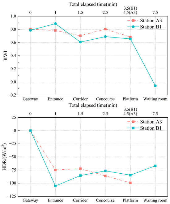 Passengers pass through several sections when entering the subway station, often briefly stopping in transitional areas like stairs, security checks, and ticket counters. These transitional areas typically link spaces with varying thermal parameters, such as air temperature and relative humidity. The U.S. Department of Transportation [49] and ASHRAE have specifically proposed the relative warm index (RWI) and heat deficit rate (HDR) for transitional spaces such as subway platforms and concourses. The RWI is suitable for warmer environments, while the HDR is used for colder environments. Both indicators can predict changes in thermal comfort as activity levels fluctuate. These indices have been validated in the cold northern [14] and warm southern regions [50] of China but have not been applied or validated on ESS buildings in the HSCW region.