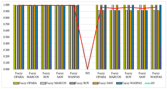 In the same way, the weights of the main group of criteria were calculated, as shown in Table 1 (from the first to third row). By applying the IMF SWARA method, also in combination with the Fuzzy HM operator, the weights of all the 25 sub-criteria within each main group were obtained, which is also presented in Table 1 (from the fourth to fourteenth row).