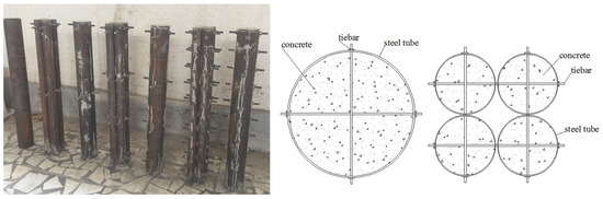 A total of seven CFT columns were manufactured and tested under uniaxial compression, including four simple and three four-cell columns confined with varied spacing tie bars.