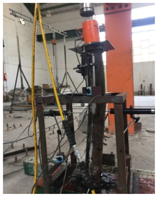 The ST37 (Noshirvani University of Technology, Babol, Iran) reinforcing threaded bars with a diameter of 12 mm were used as tie bars, as they were slightly longer than the diameter of the column so that a bolt could be attached to their ends and tightened to the steel tube’s outer wall. The bolts were tightened, and the steel wall was not exposed to any initial tension or compression before it was subjected to other forces (prestress force). A pair of tie bars were positioned on each column. The yield strength of the steel tubes and tie bars, determined through tensile testing conducted in accordance with ASTM 370-03 [47], was 280 MPa and 240 MPa, respectively, as illustrated in Figure 2.