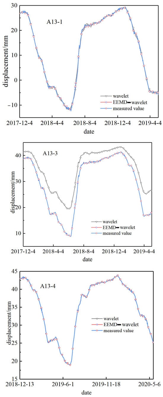 16], which affects the prediction accuracy. To solve the problem, a nonlinear intelligent optimization algorithm based on EEMD–wavelet data denoising was established, and a spatio-temporal prediction model based on the EEMD–wavelet model was proposed. A concrete arch dam in the lower Yalong River was taken as an example to verify the accuracy of the model.