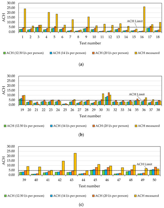 Lastly, various guidelines for testing ventilation rates recommended between 5 and 6 air changes per hour for classrooms with an approximate surface area of 100 m2 [69].