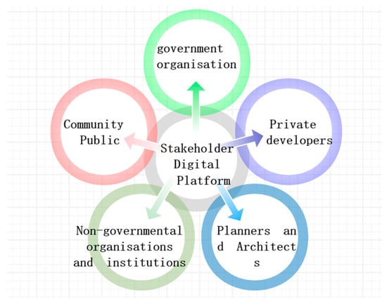The various stakeholders in urban renewal projects include local, state and national officials in the environmental and economic development sectors, as well as officials in the private sector (both institutional and individual), who seek to invest capital, mitigate risks, make profits, and enhance their reputations; members of the public living in the vicinity of an urban renewal project should also be included, given the possible impacts on their health and quality of life. The relationships between these different stakeholders, the characteristics of the different partnership models, and the power, mechanisms, and modus operandi of the different agents greatly influence urban regeneration policies, processes and project implementation. Different stakeholders guide sustainable development in different contexts. In today’s era, with the rise of CIM+BIM digital platforms, different stakeholders will build channels and platforms to communicate with each other more easily and mutually. For example, ref. [35] studied the drivers, barriers and facilitators of BIM innovation in developing countries by means of a literature review, and screened 47 articles that met the research criteria for an in-depth comparative study, which showed that BIM innovation in developing countries is influenced by a variety of factors, including different stakeholders such as government policies, technological capabilities and organisational culture.