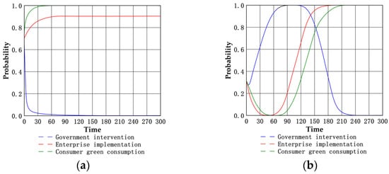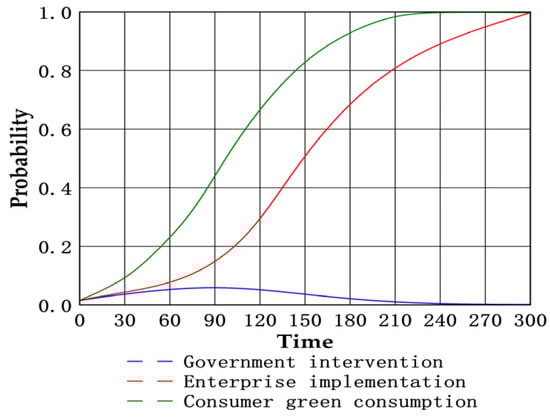 - The participants within the GBSC exhibit significant interdependence. Specifically, government intervention is primarily driven by enterprises’ implementation of green supply chains; enterprises’ willingness to implement the green supply chains is primarily driven by consumers’ green consumption; and consumers’ green consumption is influenced by the combined efforts of the government and enterprises.