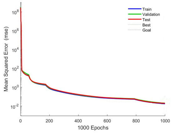 As clearly shown in Figure 3, after the JS-BP neural network reaches the thousandth iteration, where training is terminated, the mean squared error of the training process has basically converged to a fixed value of 0.02. The test values and training values are basically consistent during the training process, and there is no occurrence of overfitting. This fully proves that the optimized algorithm has strong stability and good generalization performance.