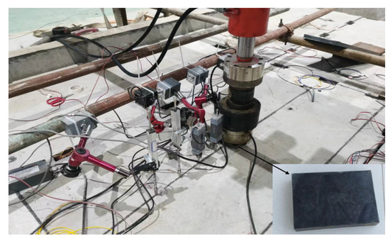 The B-737-800 aircraft was also selected as the typical load from the specification. The ground size of the tire was 610 mm × 420 mm, with a pressure of 1.47 MPa. Considering the reduced scale, in the experiments the loading size was 183 mm × 126 mm, while the pressure was kept the same as the actual aircraft loading. The loading method was as shown in Figure 14.