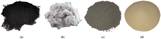 Test materials: (a) sodium humate; (b) lignin; (c) fly ash; and (d) xanthan gum.