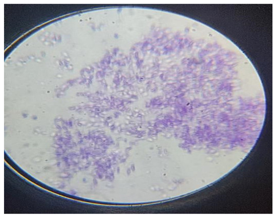 In the experiment, the bacterial strain used was Staphylococcus aureus. This strain was the dominant one obtained by culturing the microorganisms in the laboratory air and then isolating them through the streak-plate method. The morphology of the bacteria is shown in Figure 1 and Figure 2.