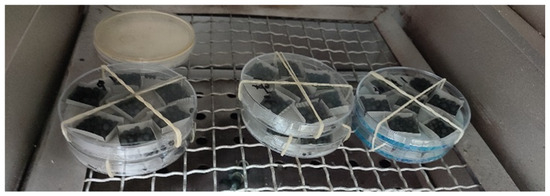 The specific control methods are as follows (see Figure 3): When using a solution to control humidity, absorbent cotton is placed in the humidity-control layer of the Petri dish, and then an excessive amount of saturated salt solution is dropped onto it. When using silica gel to control humidity, the silica gel particles are directly placed in the humidity-control layer. Above the humidity-control layer is an 80-mesh stainless-steel sieve. The small box filled with activated carbon is placed on the stainless steel sieve, and then the Petri dish lid is covered. In this way, a stable relative humidity condition is created within the Petri dish.
