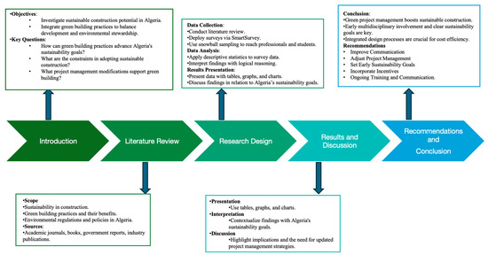 This study also incorporates established research methodologies, such as those employed by Choi (2012) [31], which provide a structured approach to data collection and analysis. A scientific process was followed to examine a broad range of information, including regional construction sector dynamics and sustainable development practices in Algeria. Furthermore, an in-depth literature review was conducted to identify key concepts, theories, and best practices in sustainable construction and green project management (Darko et al., 2017) [32].