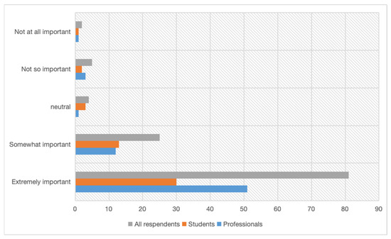 Although there are remarkable results of awareness, such as 14 votes (12.84%) of respondents for awareness of green building certifications and 10 votes (9.17%) for awareness of technology advancements in sustainable construction practices, there are still key aspects of sustainable skills that remain low awareness exposition. These are opportunities for further training and promotion in the industry (Figure 11).