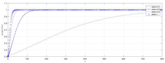 In addition, the discount factor () for setting practitioners is a function of the time preference of the subject of interest and can be considered as a characterization of the initial credit level. For the government, the discount factor is 1. For individuals, a greater emphasis on short-term gains and losses results in a lower discounted value of long-term gains and losses in the current period, thereby lowering the initial credit level.