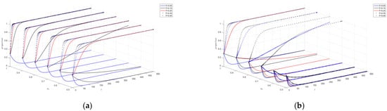 29]. Loss aversion and reduced sensitivity contribute to systemic anomalies, and these psychological factors are quantifiable. Furthermore, increases in the risk–reward coefficient and loss aversion coefficient in prospect theory facilitate the evolution of game outcomes toward theoretical equilibrium [
