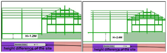 Except for the first through-beam, which has a relatively fixed position, the position of the top through-beam is related to the height of the hypostyle columns (Table 2). The placement of the remaining through-beams is relatively flexible, reflecting the wisdom of the Tujia people. Due to common limitations in materials and supplies, it is often impossible to meet the demand for evenly spaced beams. The specific positions of the through-beams in Tujia dwellings are flexibly adjusted based on their basic connection and load-bearing functions, resulting in a rich variety of forms. Moreover, when the dimensions of the through-beam materials are inappropriate, the uneven arrangement can provide opportunities for secondary material adjustments, greatly reducing material waste [12]. Based on this, the positions of all through-beams are reserved as initial variables and incorporated into the specific layout grammar to better reflect the flexibility of through-beam arrangement.