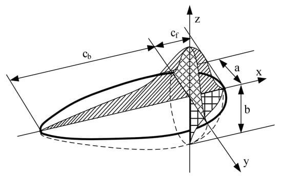 For the simulation of the welding heat source, the double ellipsoidal heat source model proposed by Goldak et al. [47] was employed, as presented in Figure 7.