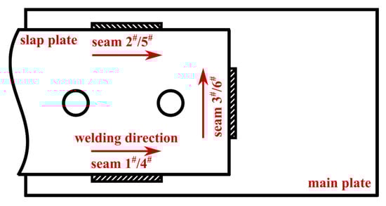 - Welding sequence 4: 1#→4#→2#→5#→3#→6# (where seams 4#, 5# and 6# are welded in the opposite direction to that shown in Figure 10).