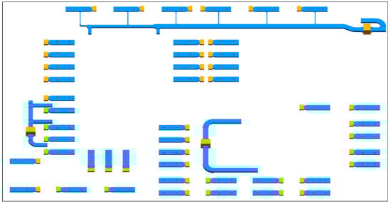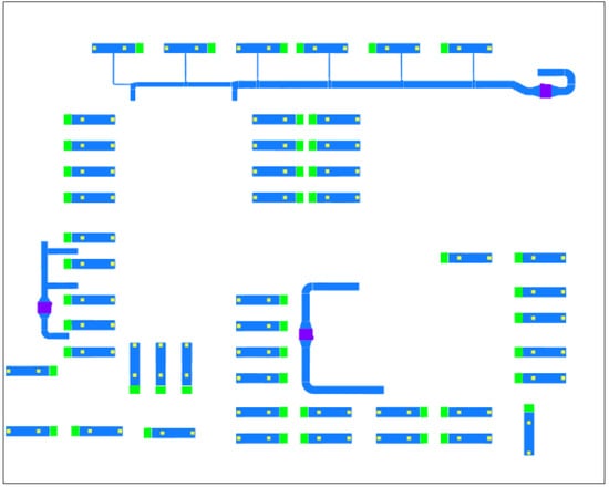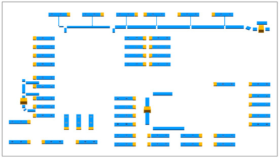 Consequently, before prediction, it is required to perform sliding window cropping on the MEP drawings, and each cropped image was predicted individually. After prediction, the mask images from each cropped image are stitched into an overall mask image through the sliding window stitching method, eliminating any impact on subsequent processes. The overall MEP mask of a certain floor is shown in Figure 5.