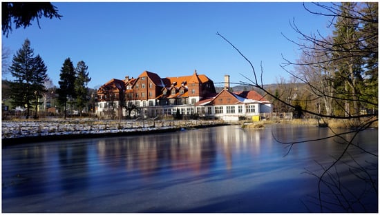 We cannot ignore the role of sports in the development of regional and sports buildings that attracted connoisseurs of tourism and sports. This resulted in the creation of transport connections, allowing for the migration of people to mountain towns, including representatives of the worlds of literature, science, and sports, as well as the creation of modern facilities and equipment serving both tourists and the local population. Sports investments in times of both prosperity and crisis turned out to be a choice that resulted in improved quality of life for residents, the appearance of housing estates, and increased prestige. Sports—especially winter sports—fueled the development of the region, used the resources of existing villages and increased their attractiveness, made it easier to survive the crisis, increased the area of tourist penetration, and extended the holiday season from summer to year round. In the Karkonosze Mountains, sports infrastructure and architecture were built following the patterns of the most famous centers, such as Davos, St. Moritz, and others. At the beginning of the 20th century, some villages boasted sports infrastructure at the highest world level. The Karkonosze Mountains region is famous for the architecture of its elegant resorts and smaller, intimate winter sports stations. Szklarska Poręba then became one of the world’s largest winter sports and tourism centers. The social and economic benefits of the constructed sports facilities are intertwined with compositional and aesthetic benefits. It is worth emphasizing that a characteristic feature of the first tourist and sports facilities in the Karkonosze Mountains was their location amongst the greenery. Shelters associated with sports infrastructure were usually located in the most attractive corners of nature. When designing tourist facilities, the natural and scenic values of the newly appropriated nature were taken into account. The buildings were erected on large plots, often naturally undulating. Landscape gardens were designed around the buildings. The ideal was that of English park layouts, in which naturalness, consistency with the landscape, and atmosphere and sentiment played the most important roles in the arrangement. Sports facilities occupied a special place. Surrounded by tourist buildings, sports and recreational areas such as ski and toboggan tracks, bobsleigh tracks, ski jumps, ski lifts, tennis courts, swimming pools, and ice rinks were developed. Most of these facilities were located outdoors, which contributed to a favorable balance of green areas in the village. They usually took advantage of the natural predispositions of the area in terms of topography, water, and vegetation cover, allowing for only minimal interference with the environment. In this famous mountain region, sports functions were boldly introduced into the interiors of buildings, districts, and housing estates, utilizing existing roads, squares, meadows, streams, and ponds.
