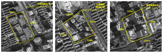 At present, as an important type of commercial building in urban areas, block-style commercial complexes are mostly located in the central areas of cities due to their higher development intensity and human flow attraction. They are often combined with urban public transportation hub nodes or laid out along urban trunk roads and secondary trunk roads. Therefore, their land size should typically range between 100 and 300 m. According to the author’s actual investigation of block-style commercial complexes in Shanghai, the size of most commercial complex building plots is concentrated between 180 and 280 m (Figure 8).