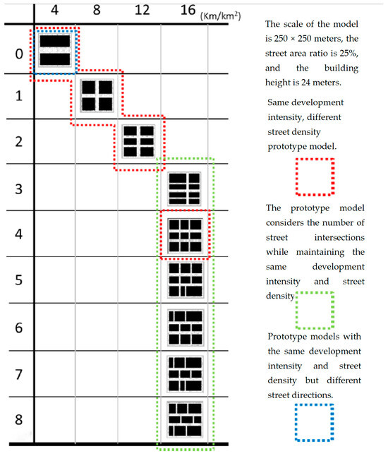 From the above practical cases, it can be seen that commercial blocks with varying street densities, intersection numbers, and street directions have different impacts on the thermal comfort of the external space. Therefore, it is necessary to analyze the effects of different factors on thermal comfort through spatial prototype simulation.