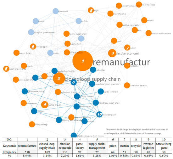The factors listed above indicate the overall theoretical status of the remanufacturing method, and they may obscure some of the more nuanced and minor findings. As a result, this research continued to classify and restructure the 29 studies’ perspectives and results. Table A2 shows the breakdown items, while Table 2 highlights the frequency of Table A2 recurring codes. It is worth emphasizing that, due to the scarcity and uncertainty of accessible information, decision traps can occur. When numerous keywords exist in the views at the same time, the execution factors associated with these keywords are selected for coding.