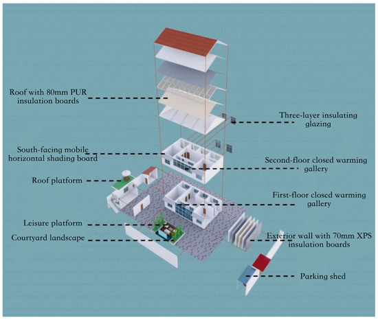 Given the increasingly urgent issue of climate change, carbon reduction has become a key focus in global governance [1]. As an important measure to improve the ecological environment and accelerate the transformation to a green economy, the goal of “double carbon” (shorthand for carbon peaking and carbon neutrality) is promoting energy conservation and emissions reduction in various fields [2]. In this context, the 19th National Congress of the Communist Party of China proposed that the implementation of the concept of “green livability” is an important guarantee for the strategy of rural revitalization and development, and it especially emphasized that the energy conservation and emissions reduction of rural houses should be the focus of rural construction reform [3]. In recent years, in order to speed up the improvement of residents’ housing conditions in rural areas, the government of Jiangsu Province issued the Special Action Plan for the Improvement of Rural Housing Conditions in March 2022, which proposes the need to pay attention to the transformation of rural houses for energy conservation, and to take into account the improvement of residential comfort. Xuzhou City, as one of the central cities of the three metropolitan areas in Jiangsu Province, is listed as the pilot area for the improvement of rural houses in northern Jiangsu. With the continuous growth of the rural economy in Xuzhou City, rural residents’ requirements for residential comfort are also increasing, and their expectations for housing have expanded from the past demand of “having a house to live in” to the pursuit of a comfortable indoor environment. Through an investigation, it was found that the existing rural houses in Xuzhou are mostly built independently by local construction teams according to their experience, lacking any corresponding technical guidance. As a result, the thermal performance of the building envelope of rural houses is poor, and a lot of energy is consumed in winter and summer to meet the comfortable indoor temperature requirements of the human body.