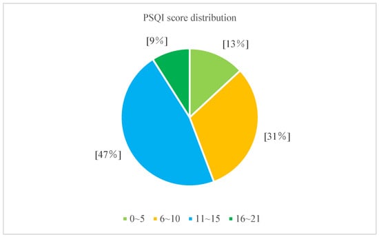 The Pittsburgh Sleep Quality Assessment Scale was used with the residents to assess the quality of the respondents’ sleep over the past month. As shown in Figure 10, 47% of the respondents considered their sleep quality in the past month to be average, 31% considered their sleep quality to be fair, 13% considered their sleep quality to be good, and 9% considered their sleep quality to be poor.