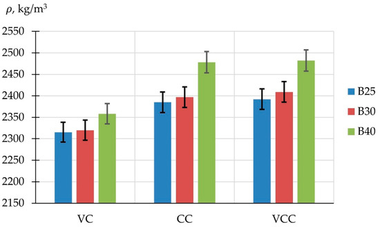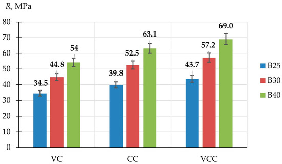 3.1. Results of Determining the Properties of Concretes Manufactured Using Different Technologies