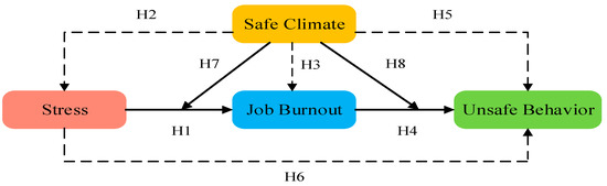 - Zhou, J.; Hu, F.; Xing, Y.; Gao, R. Influence of Work Stress and Job Burnout on Unsafe Behaviors of Construction Workers. China Saf. Sci. J. 2022, 32, 14–22. [Google Scholar] [CrossRef]
