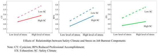 The moderating effect of safety climate between various dimensions of job burnout and stress.