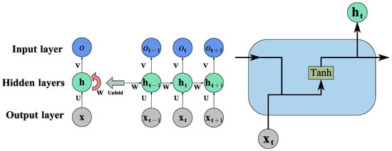 As shown in Figure 4, the LSTM neuron structure is mainly composed of an input gate, forget gate, output gate, and memory cell. represents the input at the current time step, represents the output of the forget gate at the current time step, represents the state of the memory cell at the current time step, represents the information of the output gate at the current time step, represents the weights, b represents the bias parameters, and represents the Sigmoid activation function. The symbol “” denotes the vector product, and the symbol “” denotes the vector sum.