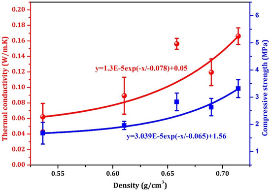 3.4.5. The Connection Between Density, Thermal Conductivity, and Compressive Strength