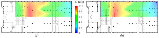 Auditorium G distribution map: (a) 500 Hz; (b) 1000 Hz.