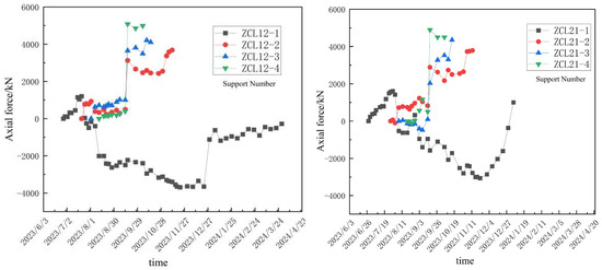 Figure 9. Curve of variation in the supports’ axial force.