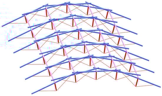 - Douthe, C.; Baverel, O. Design of nexorades or reciprocal frame systems with the dynamic relaxation method. Comput. Struct. 2009, 87, 1296–1307. [Google Scholar]