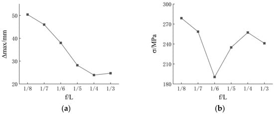 - The maximum displacement of the new cable-supported reciprocal structure decreases as the rise/span ratio increases. Under conventional loading conditions, the maximum displacements of structural models with rise/span ratios ranging from 1/8 to 1/3 all meet the code requirements. The selection of these models should be based on the specific needs of the project. Additionally, an appropriate longitudinal spacing can reduce the structural mass while still satisfying the stress and displacement requirements, but it is not recommended to exceed 6 m.