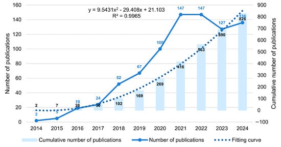 After 2022, the number of publications fluctuated but remained at a relatively high level. Following the peak of 147 in 2022, the number slightly decreased to 127 in 2023 but rebounded to 136 in 2024. This suggests that research in this field matured. With the maturation of foundational technologies, the research focus gradually shifted from theoretical exploration to the optimization of specific applications, such as intelligent traffic management, urban energy scheduling, and smart security systems. At the same time, there was an in-depth exploration of issues such as technological ethics, data privacy, and model interpretability [25].