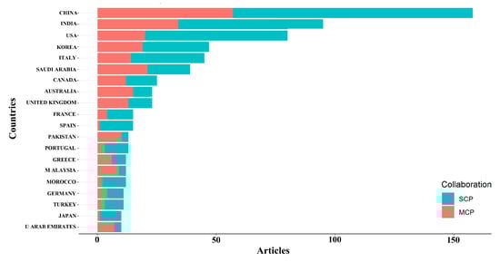 From a regional perspective, East Asian countries (such as China and South Korea) play a significant role in research in this field, with China’s dominance being particularly notable. Meanwhile, Western European countries (such as Italy, the United Kingdom, France, and Spain) and North American countries (such as the United States and Canada) also contribute significantly to the research output, with higher MCP proportions, indicating their active participation in international collaboration. Additionally, countries in the Middle East and South Asia (such as Saudi Arabia, Pakistan, and the United Arab Emirates) have shown a certain level of research activity in this field, reflecting a growing regional interest in related studies. Other countries (such as Malaysia, Morocco, Greece, and Turkey) have relatively lower research outputs, highlighting the regional disparities in research resources and development in this field.