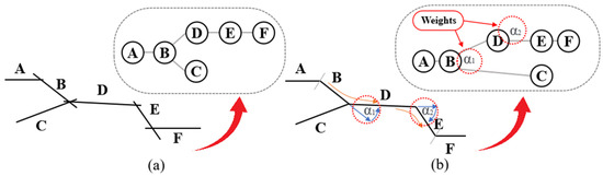 Axial maps analyze urban accessibility and traffic by connecting spaces through optimal straight-line paths, considering visual continuity. Segment analysis is a network analysis method that incorporates weighted distances and angles to segment road networks based on axial maps [32]. Hence, if an axial map graphically represents urban spatial hierarchy based on physical structures, segment maps reflect actual human movement patterns along roads influenced by this spatial hierarchy. Figure 2 illustrates the difference between these two analysis methods.