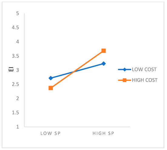 Cost weakens the relationship between sustainable practices (SP) and environmental impact (EI).