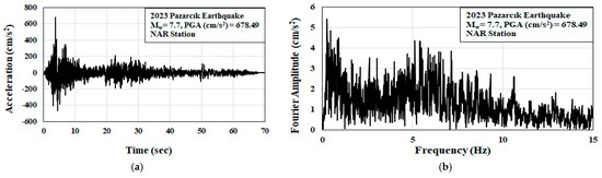 2023 Kahramanmaraş-Pazarcık earthquake: (a) the acceleration–time history; (b) Fourier spectra of the earthquake.
