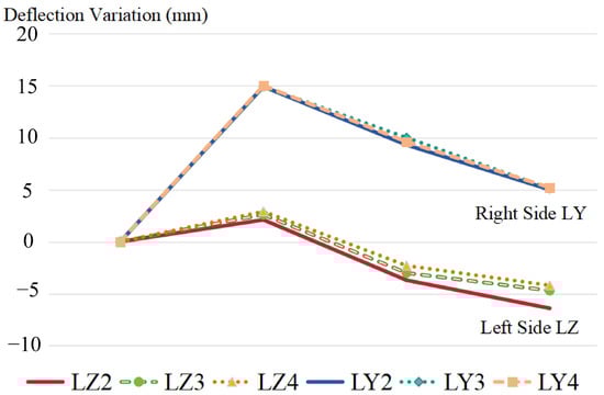 Maximum vertical deformation diagram under moving vehicle load (mm).