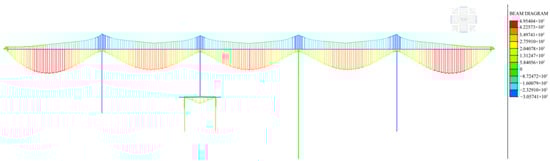 As shown in Figure 4, in the ultimate limit state of load-bearing capacity, the minimum safety factor for the shear capacity of the main beam is 1.20, and the shear capacity meets the requirements of the specifications.
