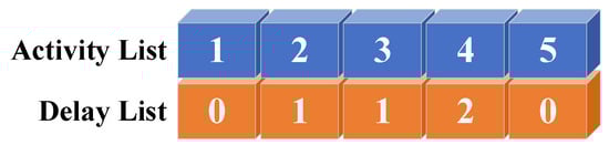 An appropriate solution representation plays a significant role in genetic algorithms (GAs). Therefore, a two-list chromosome representation is proposed to encode the solutions for project scheduling, as illustrated in Figure 2 The first row represents the activity list, and the second row represents the delay list.