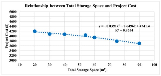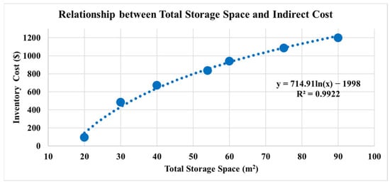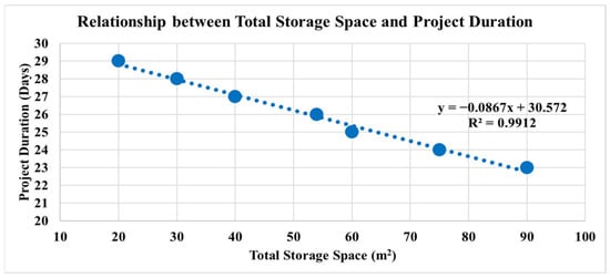 Equation (3) represents the relationship between the storage capacity of a material and the storage space it requires per unit of capacity. Equation (4) states that the total space consumed by all materials in the storage must not exceed the available storage space on the construction site. Since the materials consumed per period must be stored in advance, the storage capacity of each material () must be at least equal to the quantity of material required by each activity per unit period (). Therefore, the lower bound of the storage space for each material can be calculated as shown in Equation (5). Meanwhile, when the storage space of other materials is and the remaining space is allocated to material m, the storage space for material m reaches its upper bound, as shown in Equation (6).